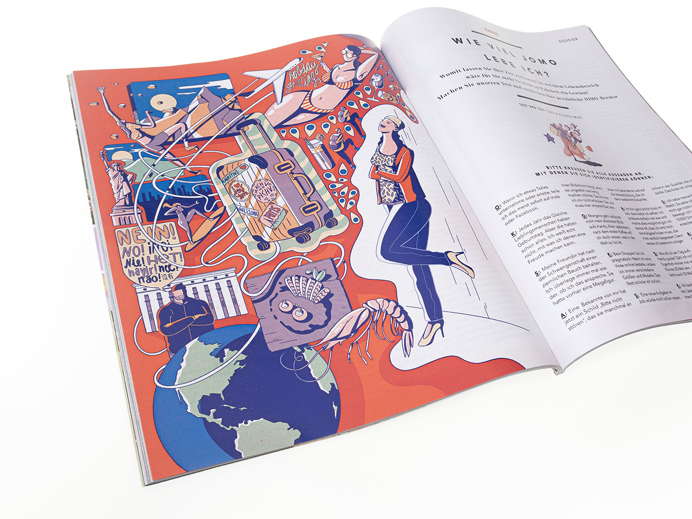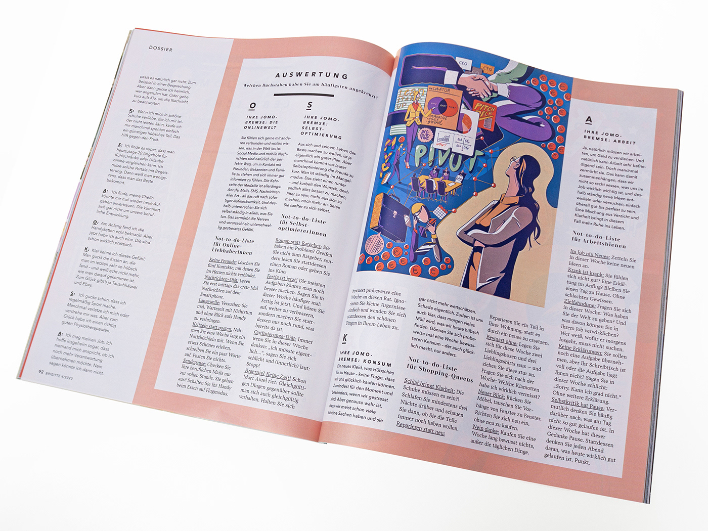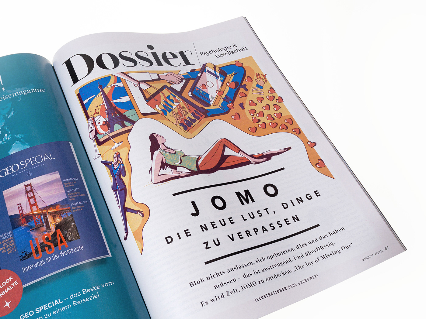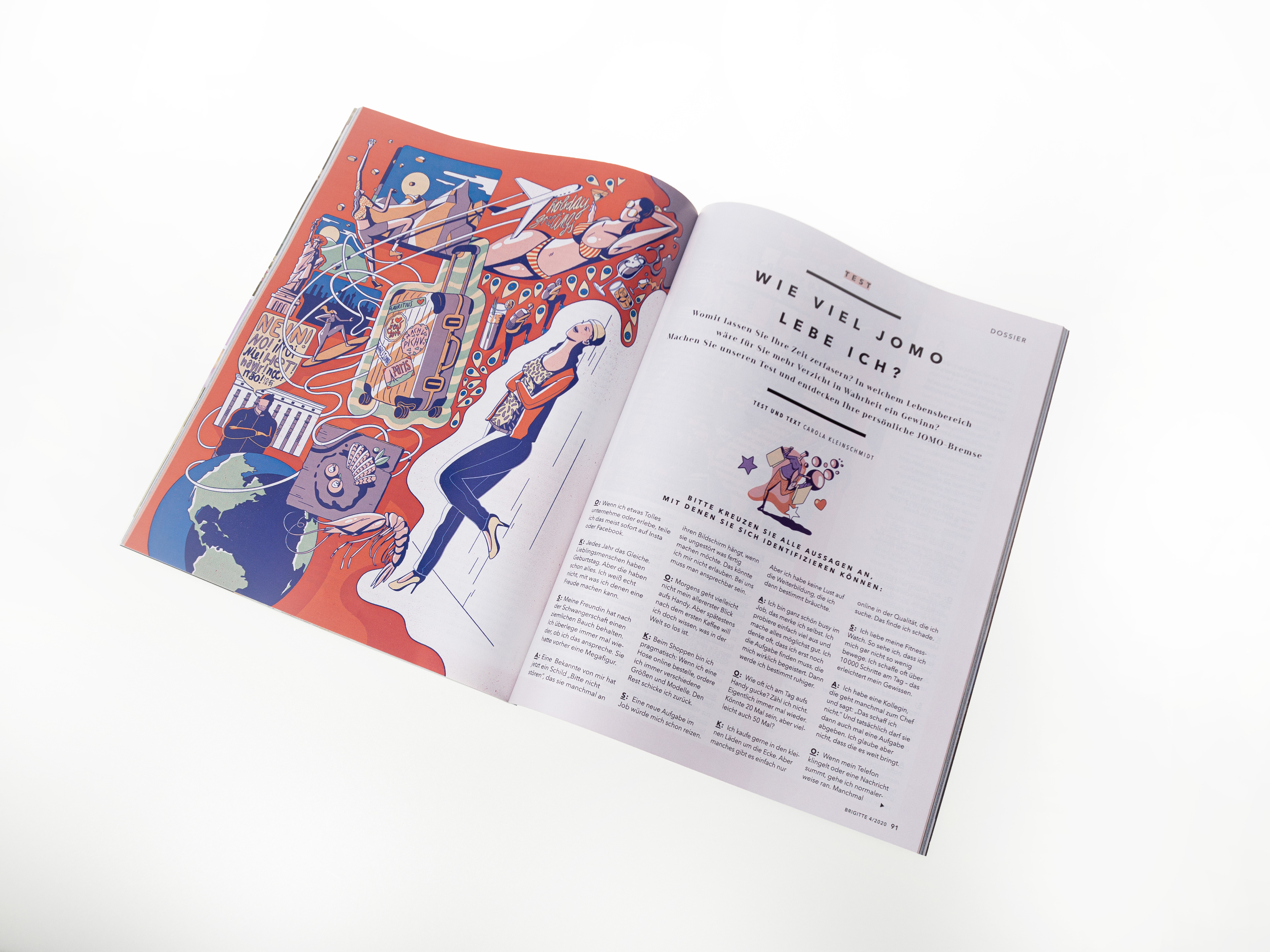 Illustrations for women´s magazine Brigitte about the Joy Of Missing Out aka JOMO
