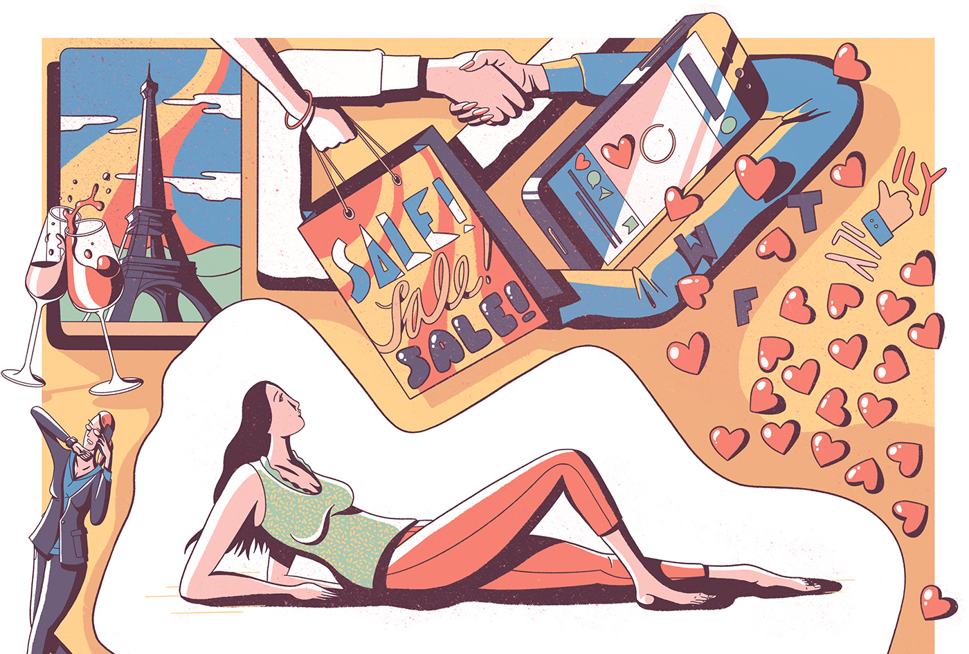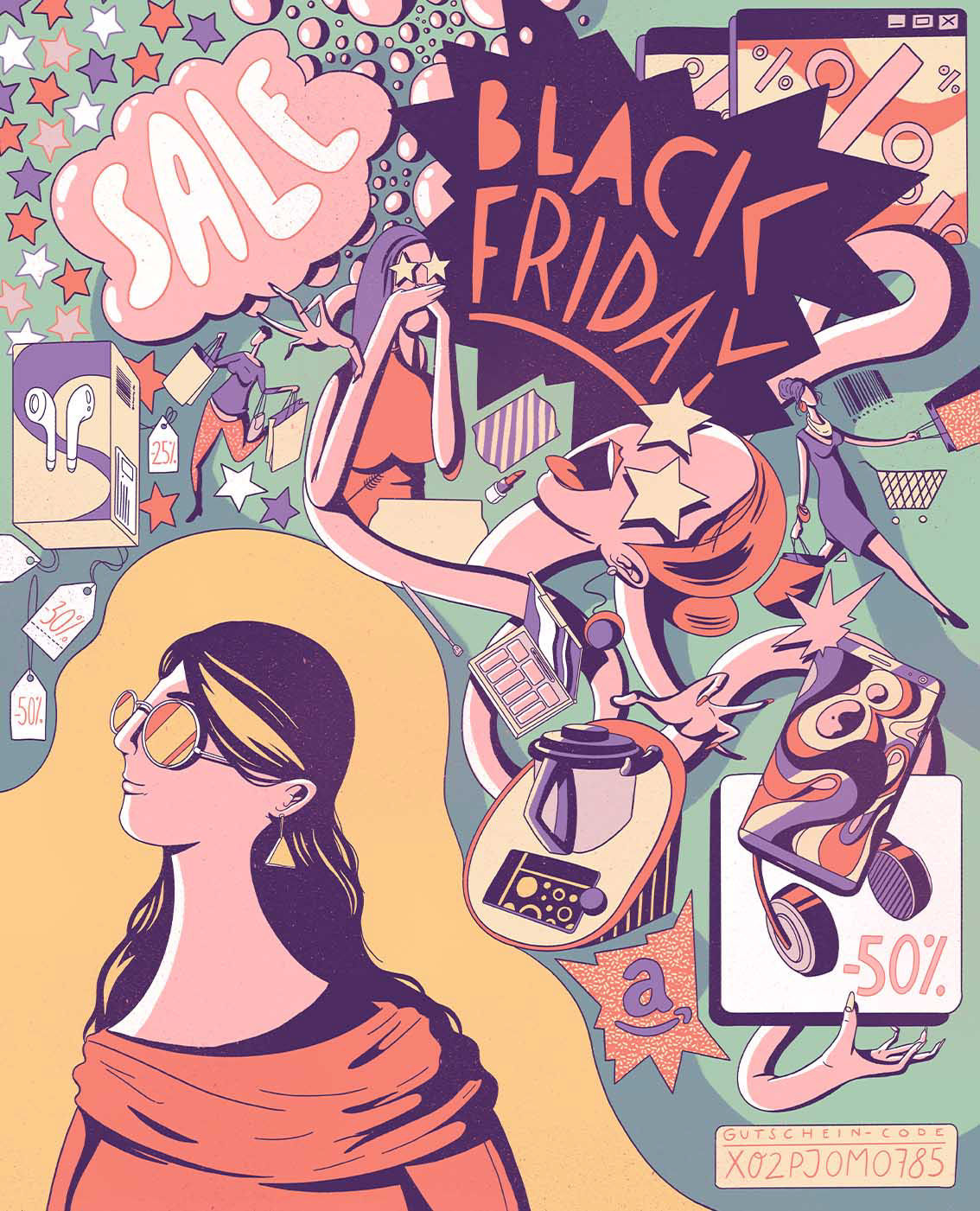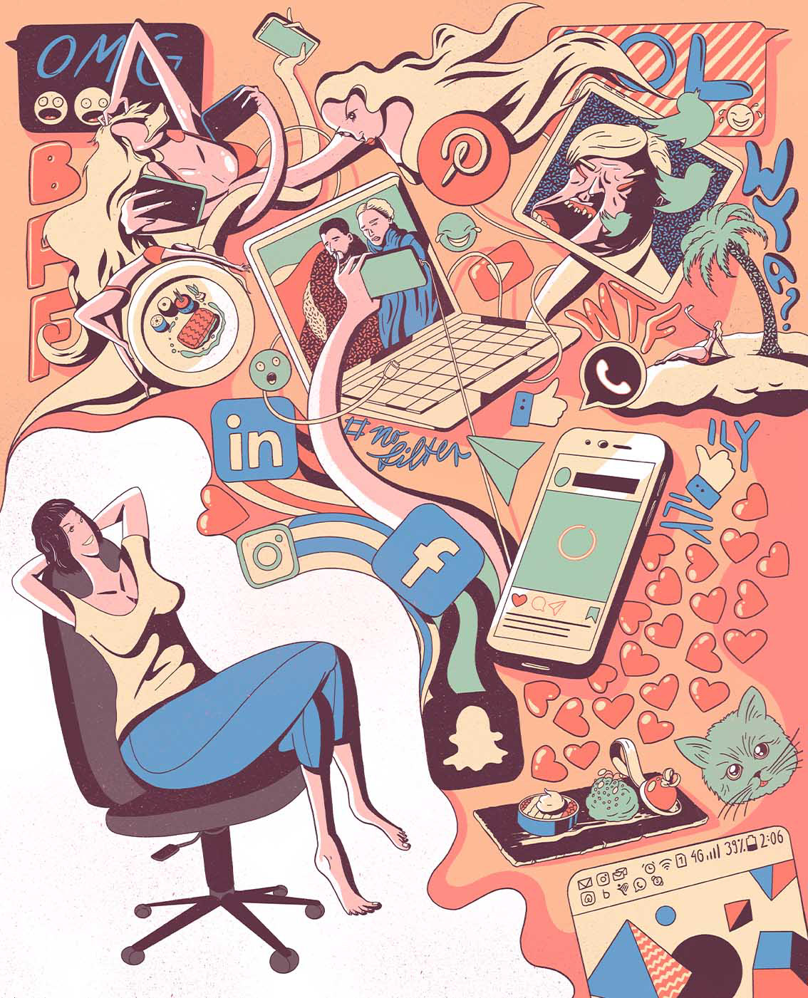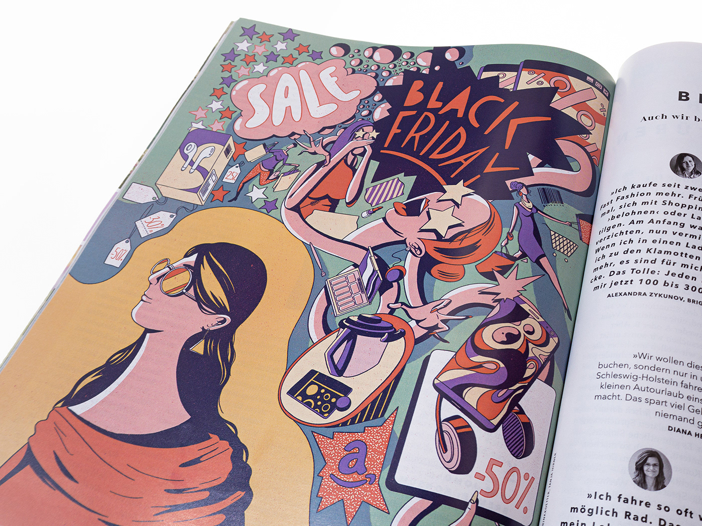 Illustrations for women´s magazine Brigitte about the Joy Of Missing Out aka JOMO