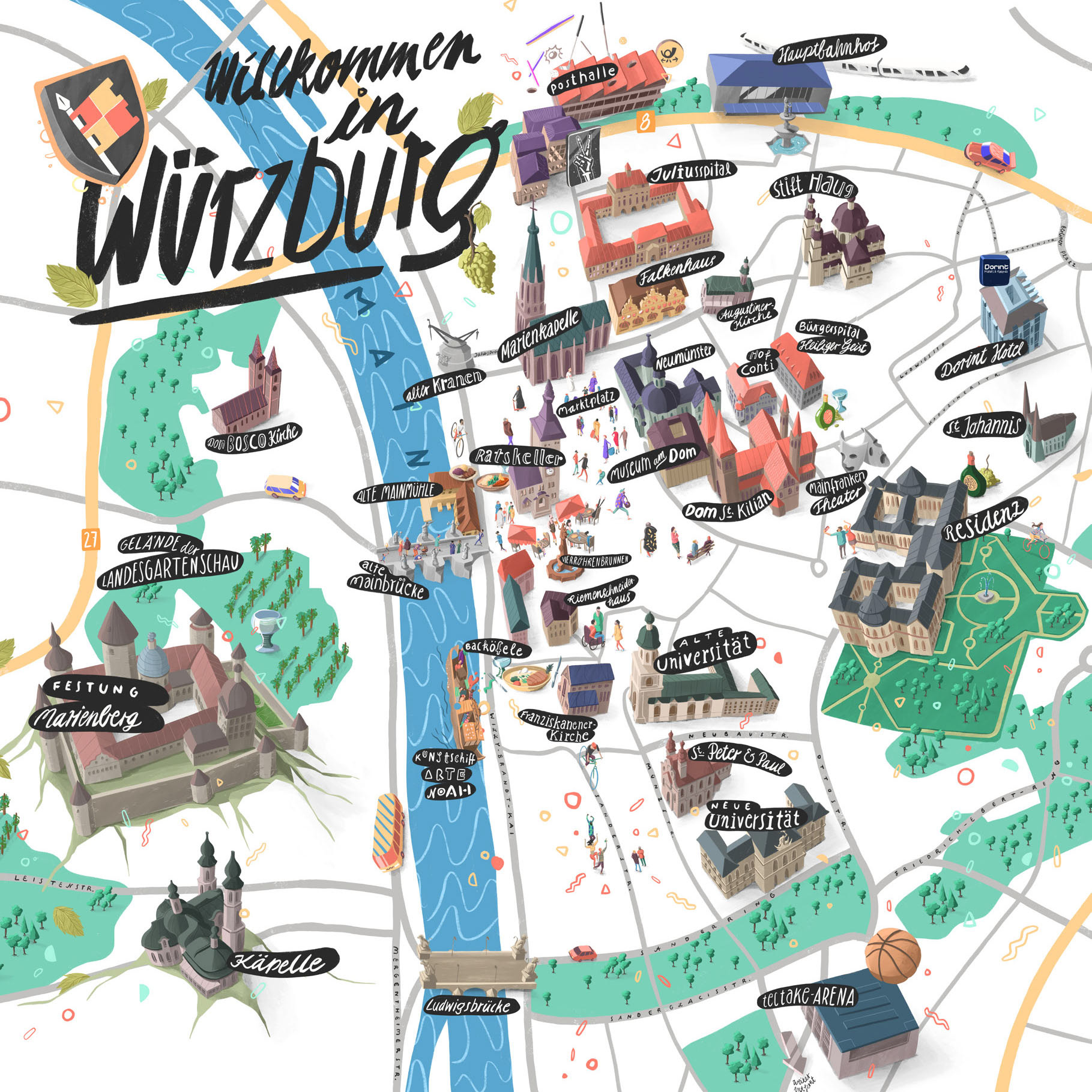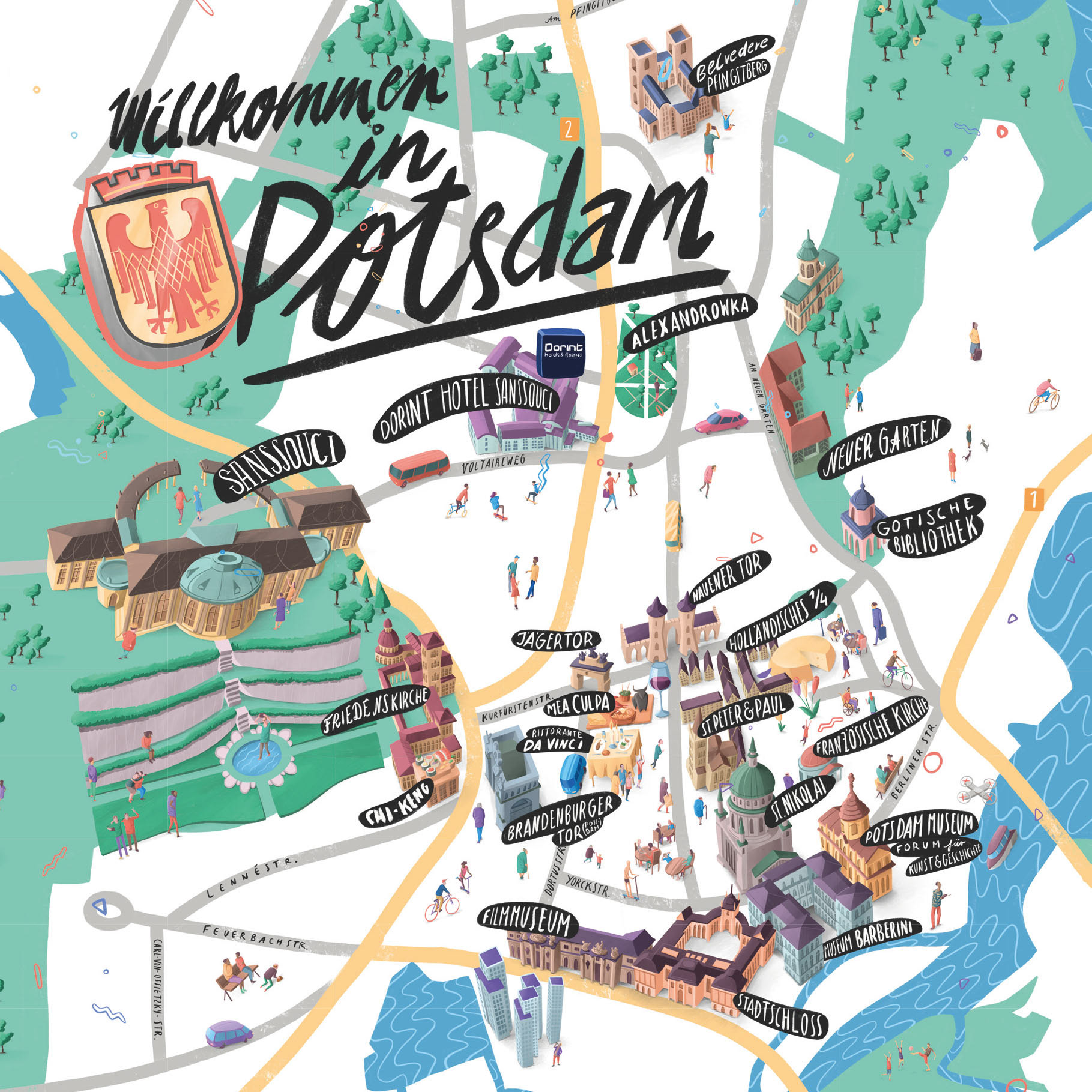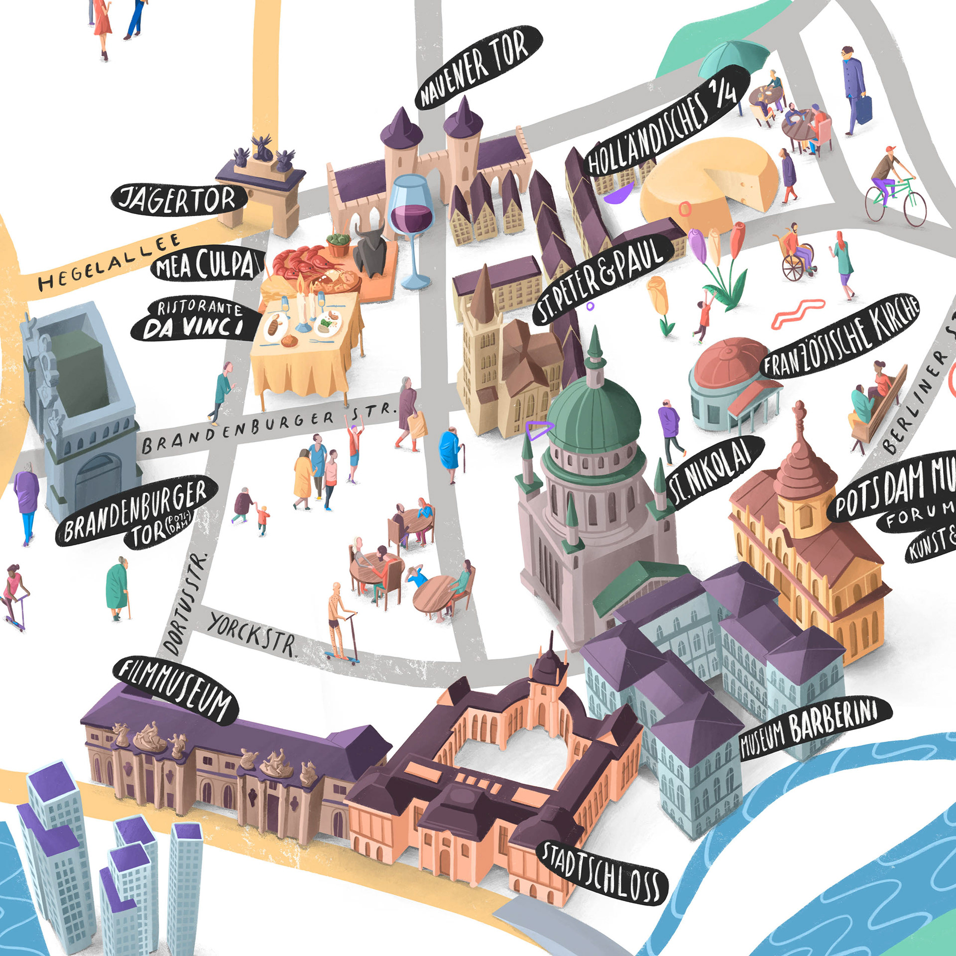 Illustrated maps of 6 German cities for Dorint Hotels. Diplayed in the hotel lobby and other print media.