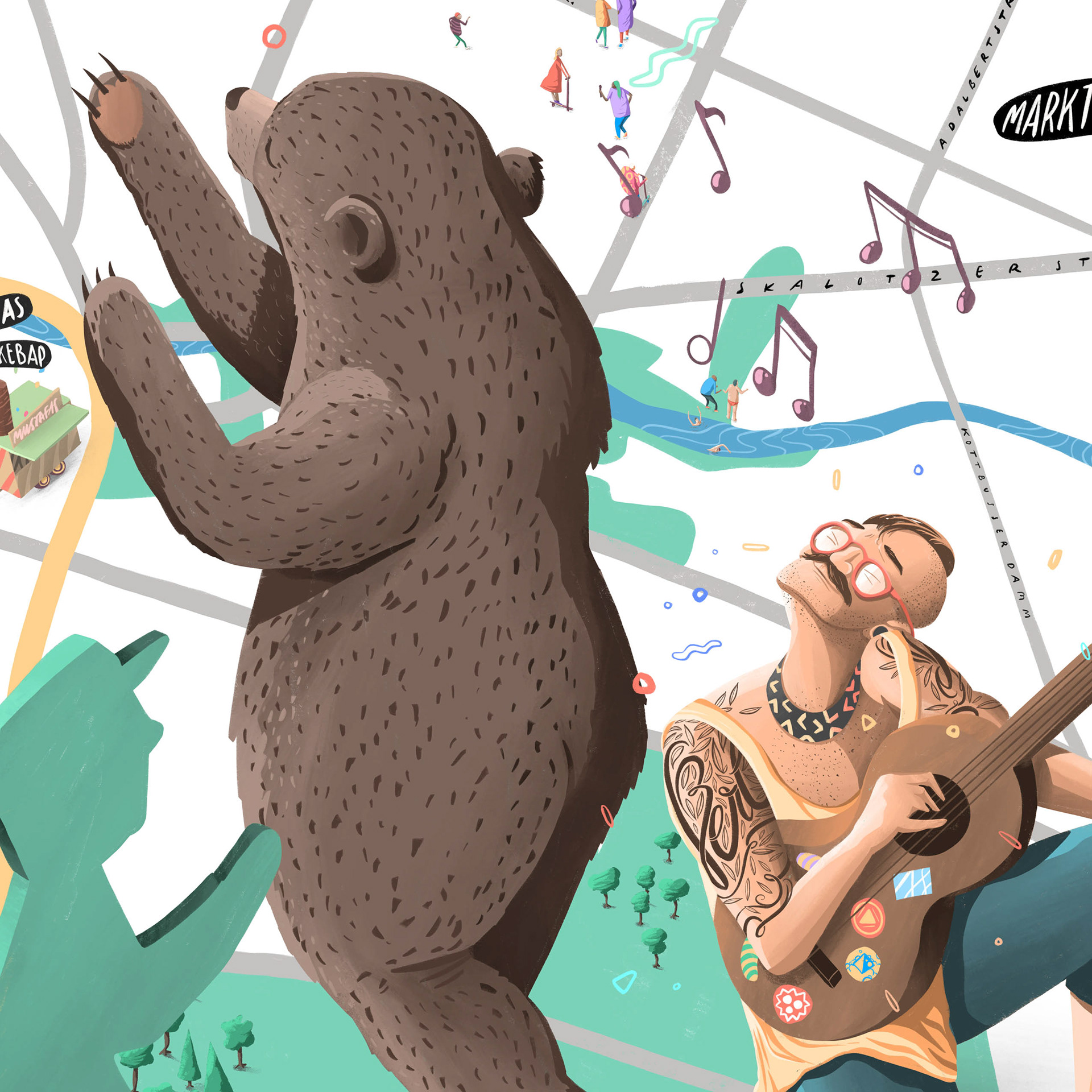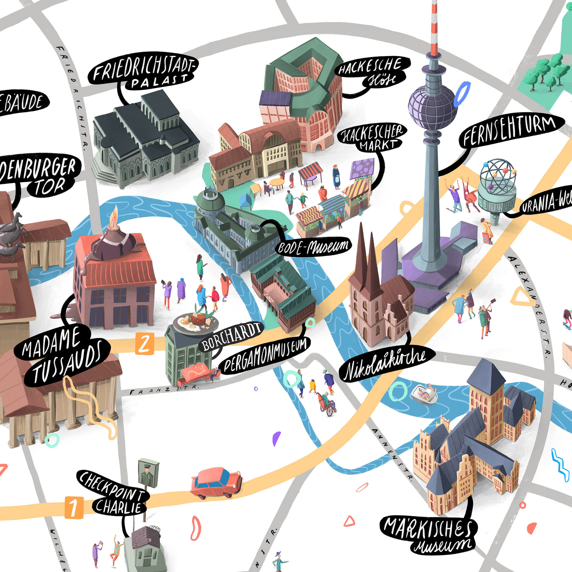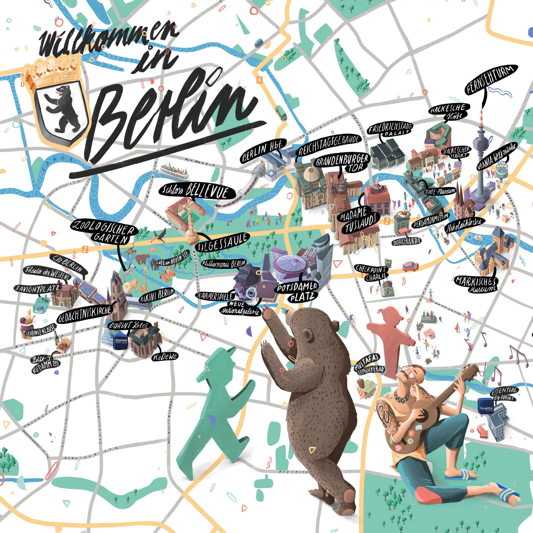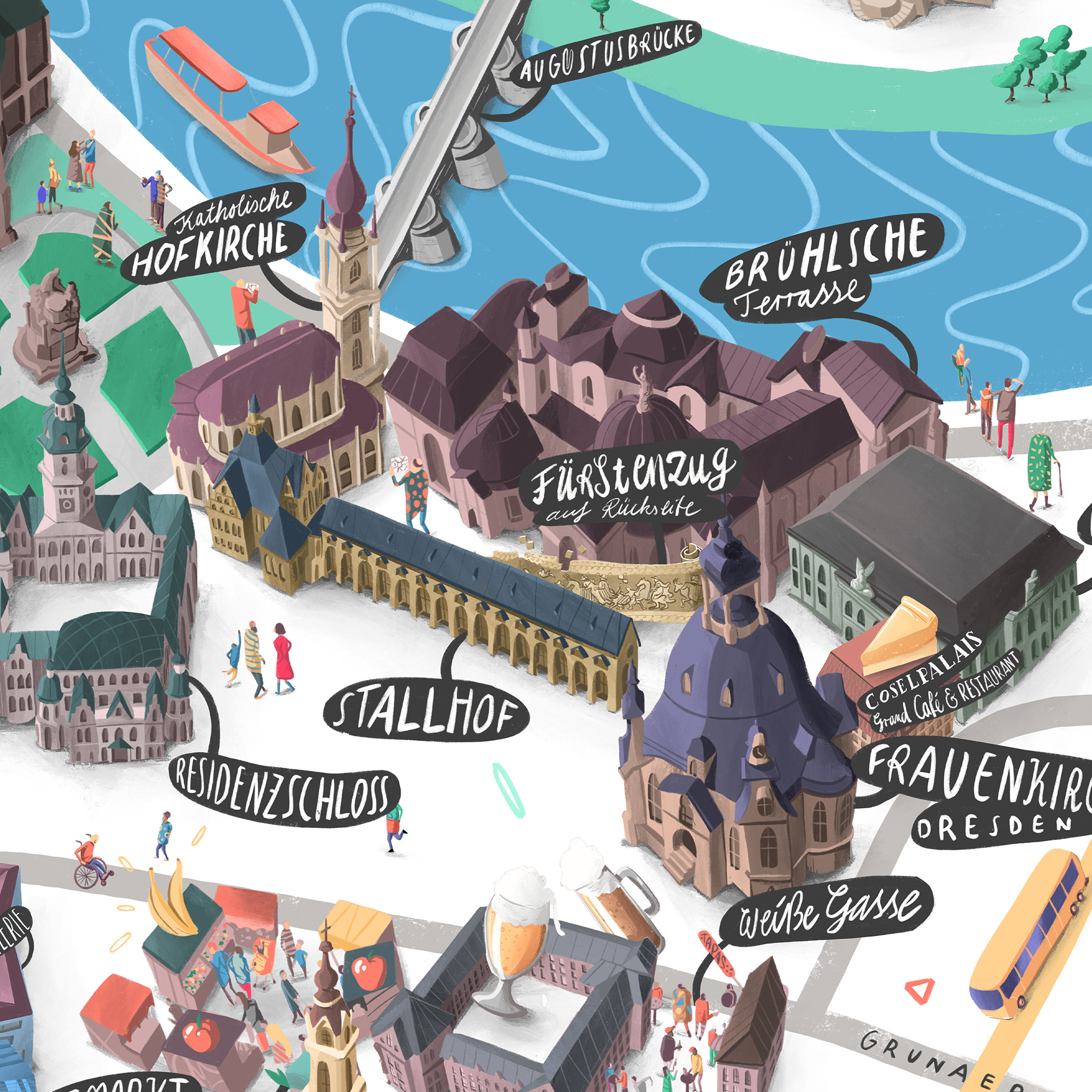 Illustrated maps of 6 German cities for Dorint Hotels. Diplayed in the hotel lobby and other print media.