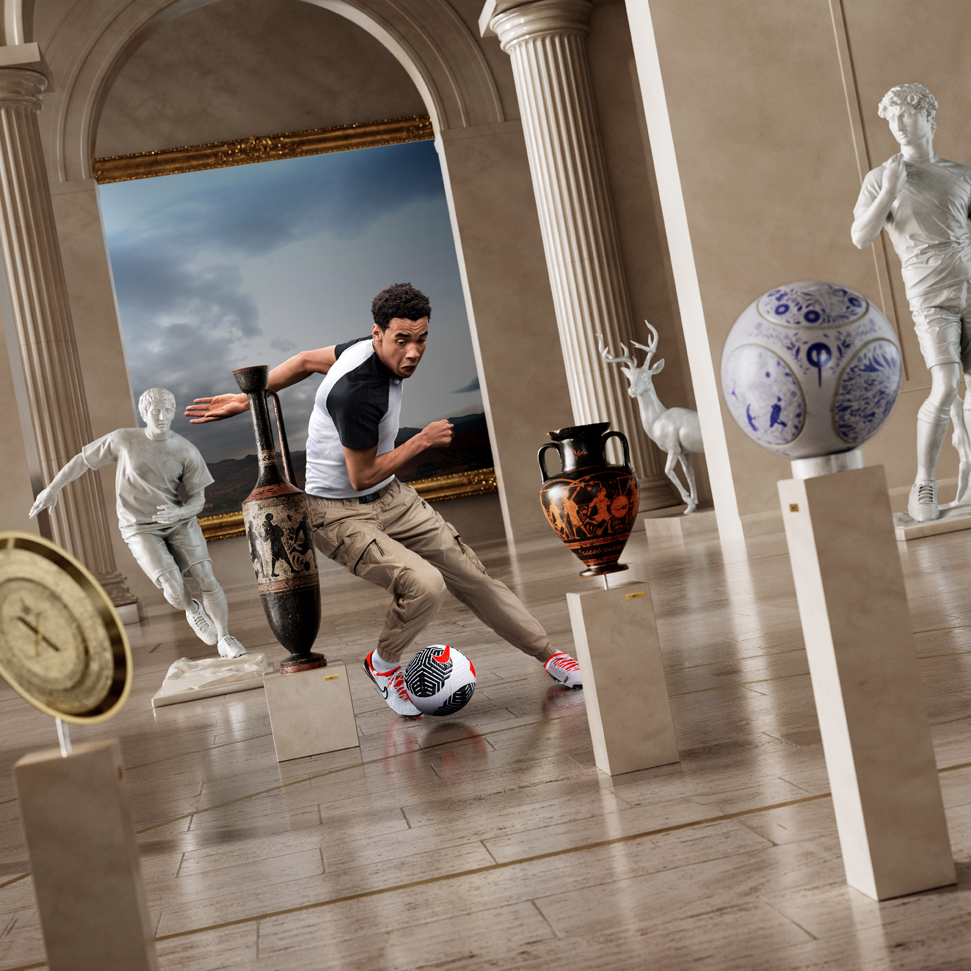 Illustration for a Nike commercial promoting the anniversary of the legendary Tiempo football boots worn by Ronaldinho. Art direction and renderings by Aixsponza.