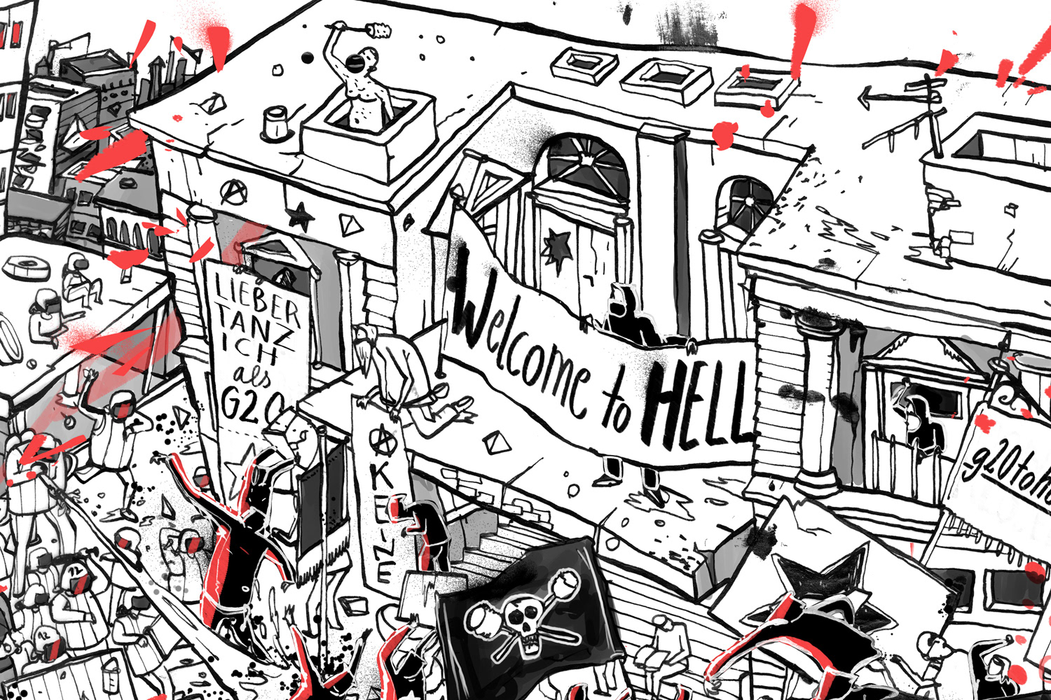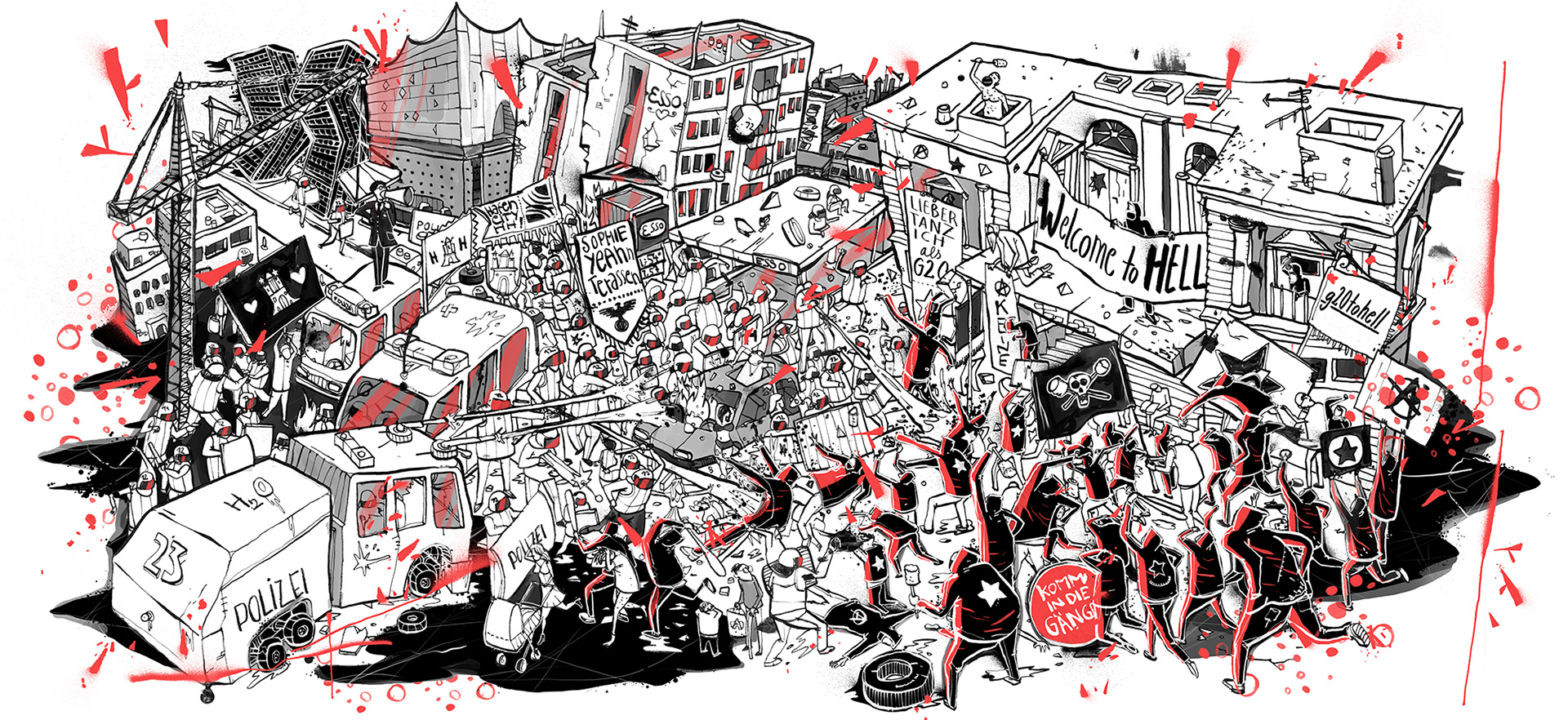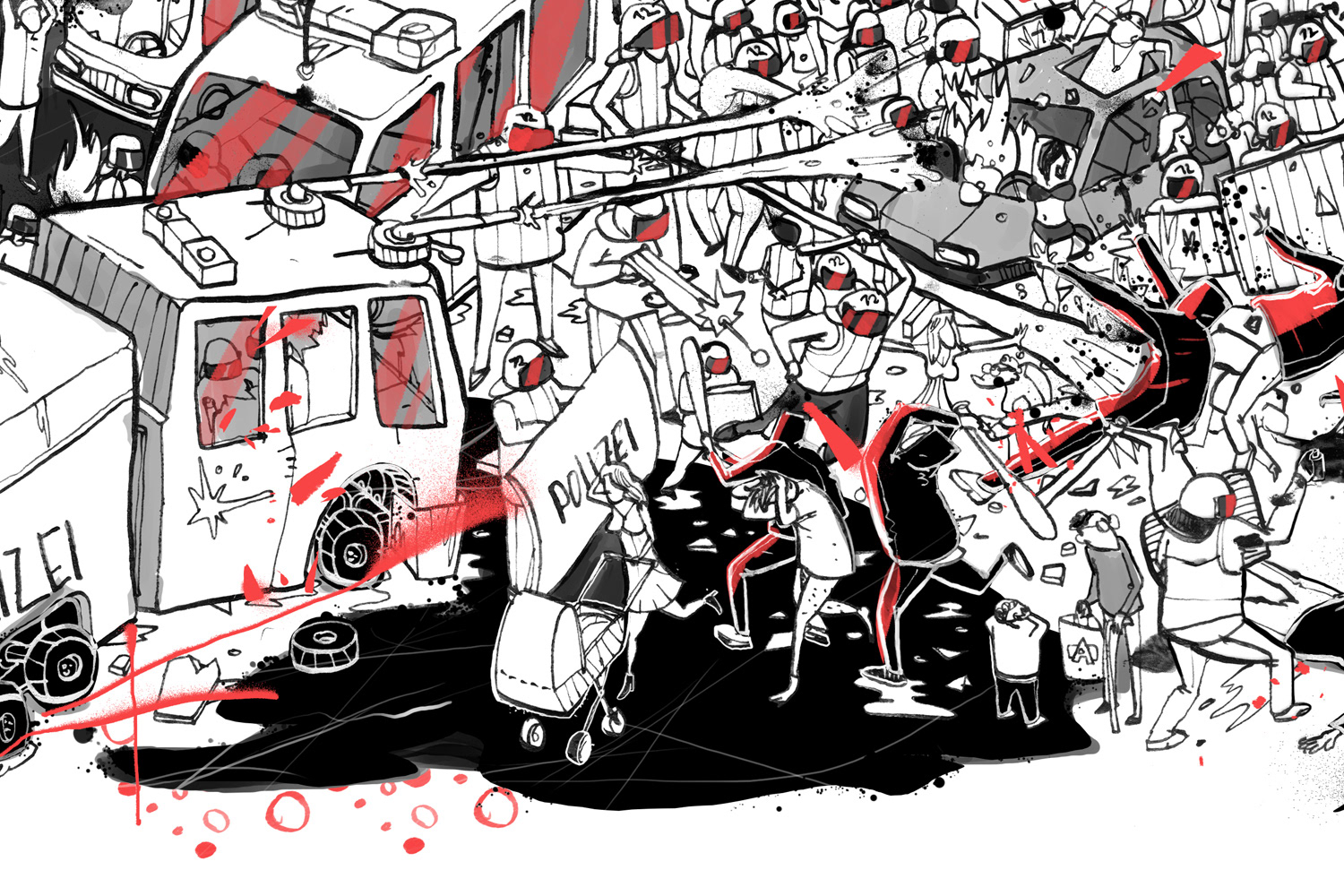 Illustration für Süddeutsche Zeitung about the Hamburg riots against G20 summit