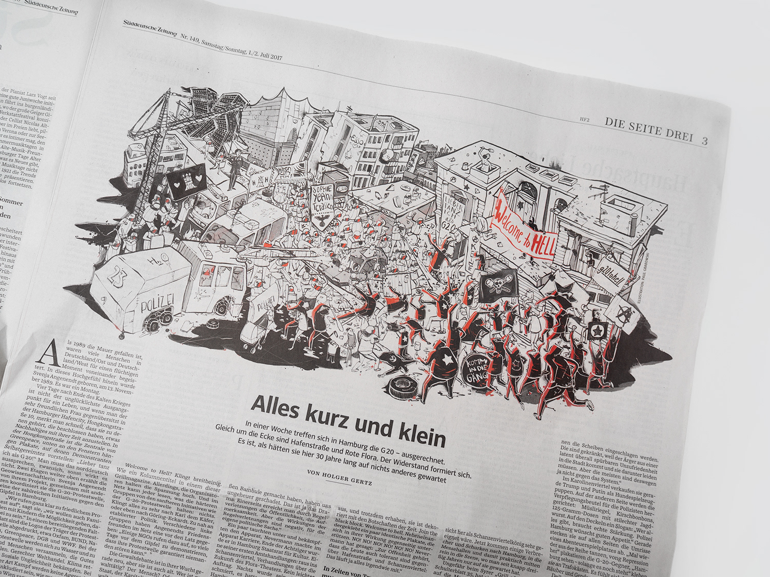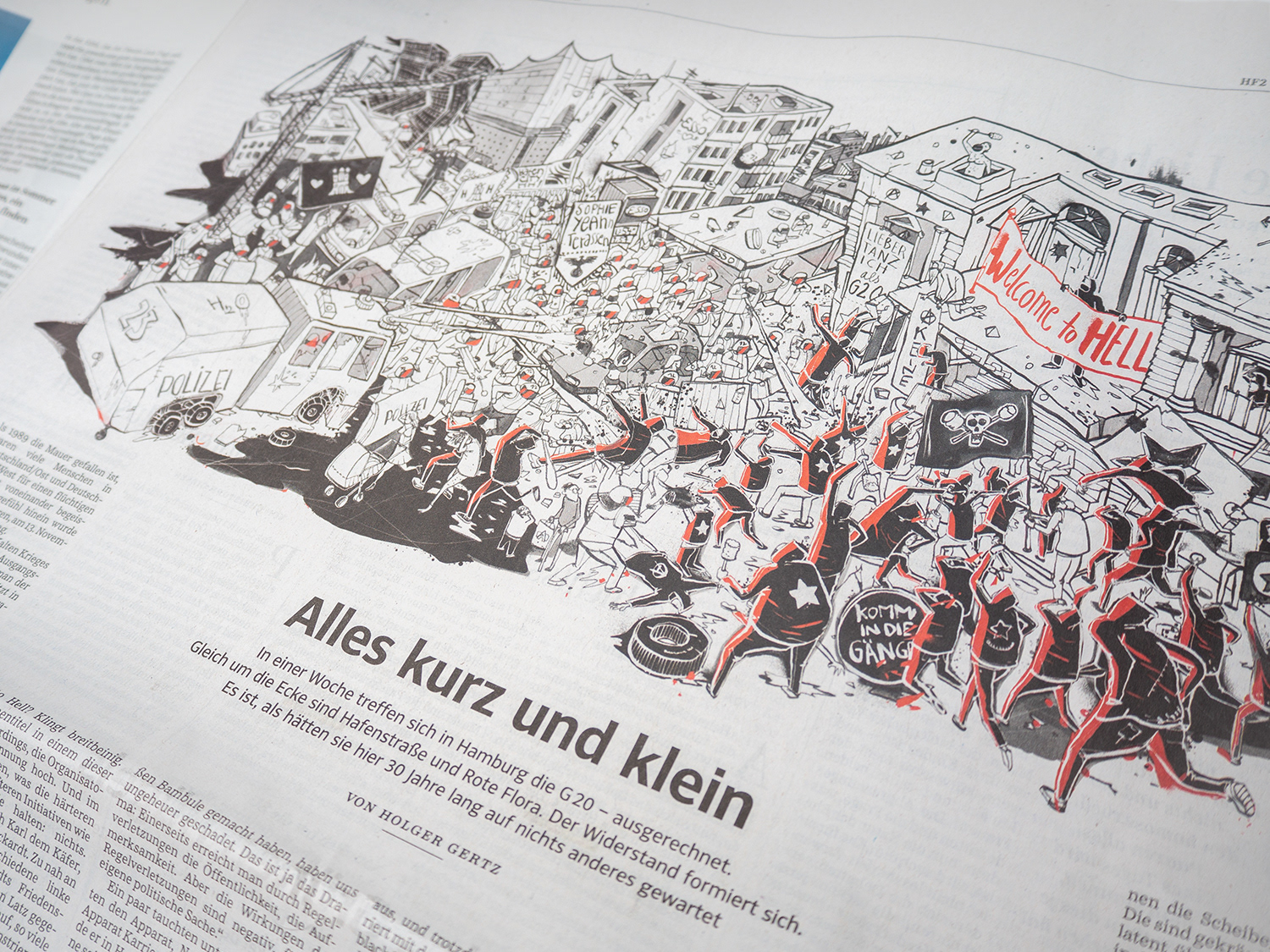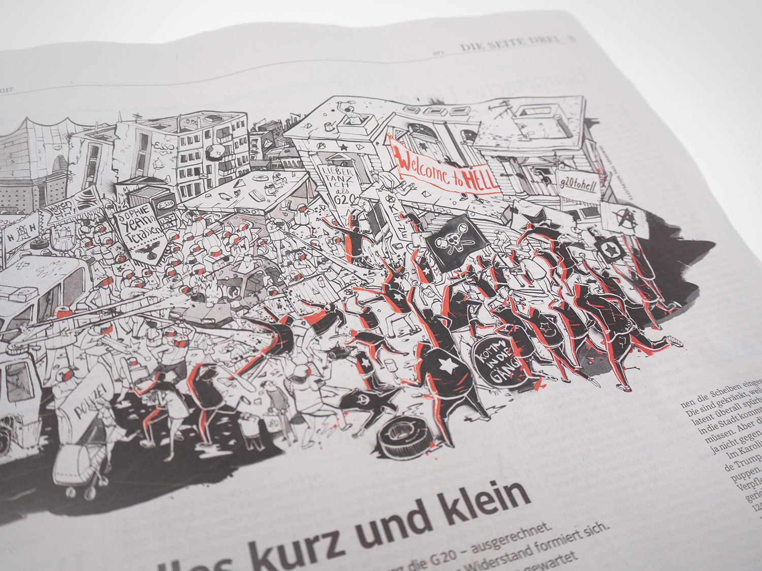 Illustration für Süddeutsche Zeitung about the Hamburg riots against G20 summit