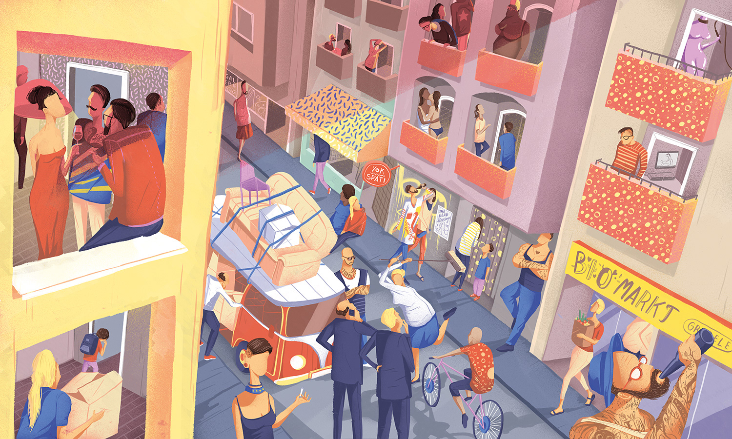 Illustration for Süddeutsche Zeitung about gentrification in Berlin-Neukölln, Art Direction by Christian Toensmann