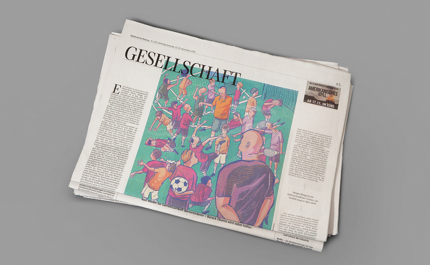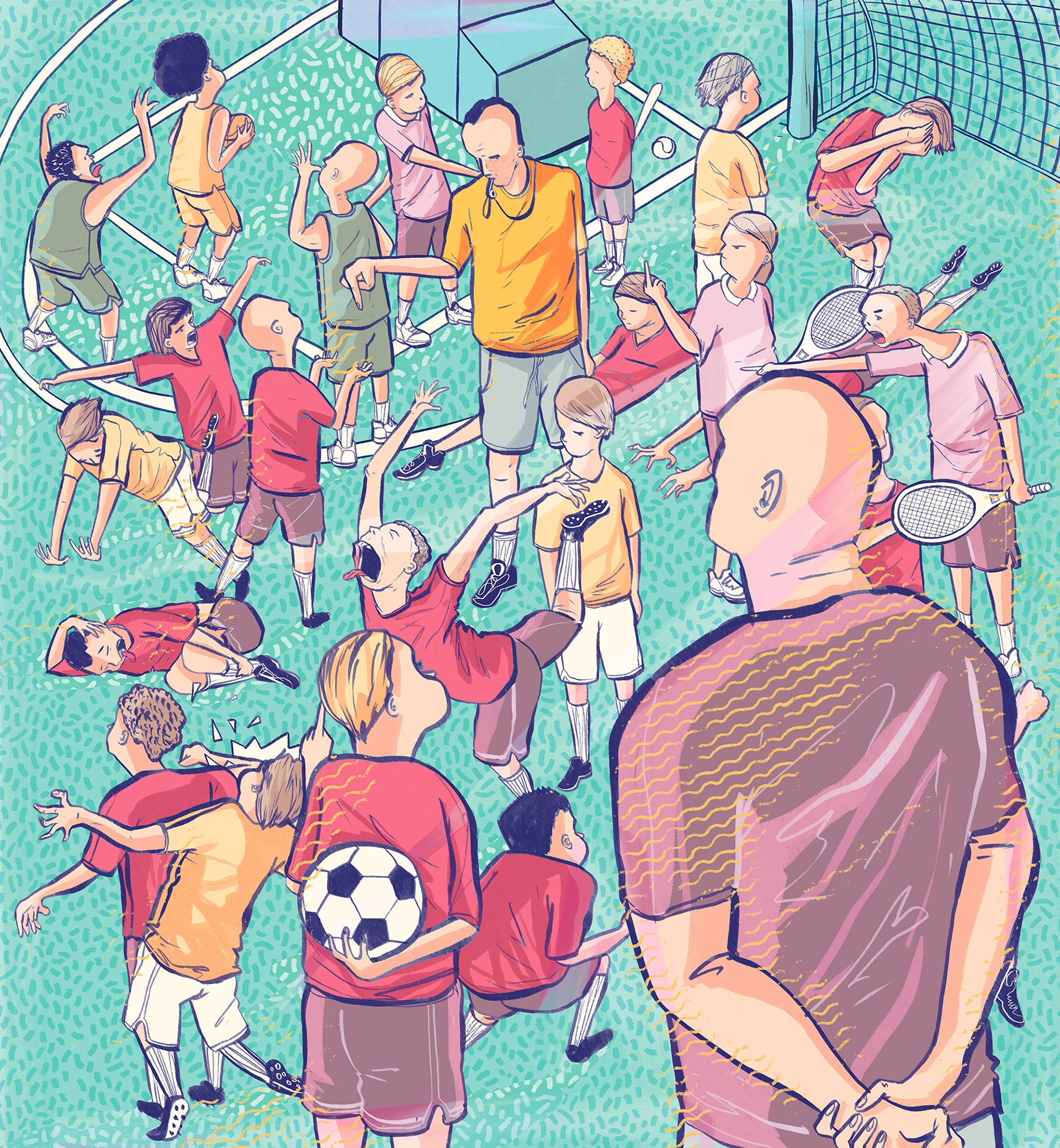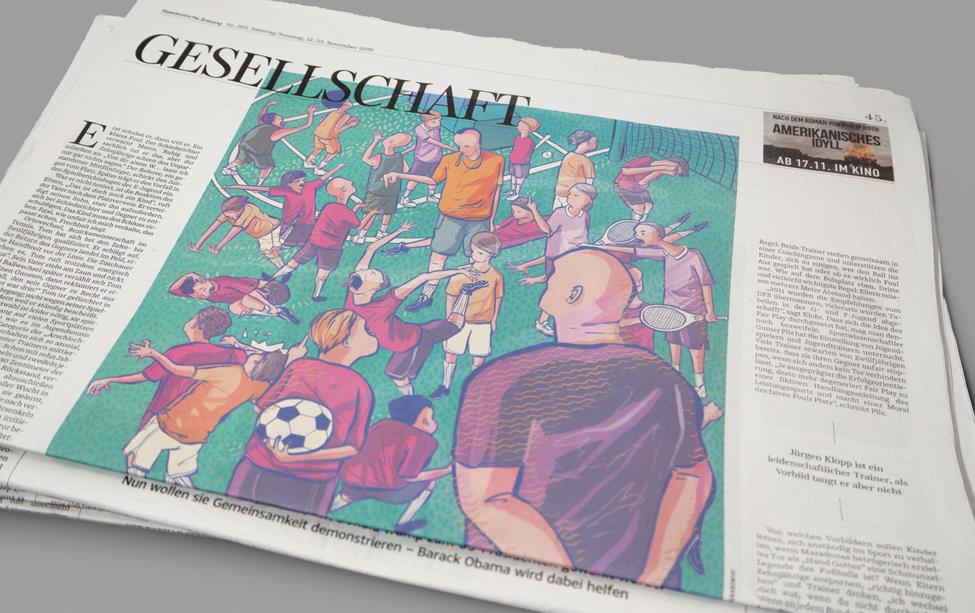 Illustration for Süddeutsche Zeitung about unnecessary roughness and over-motivation in children's sports
