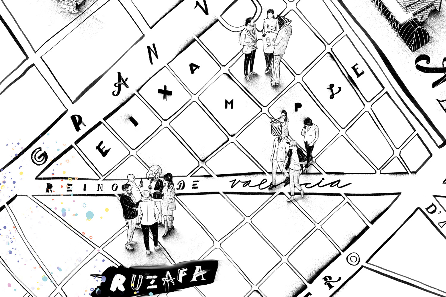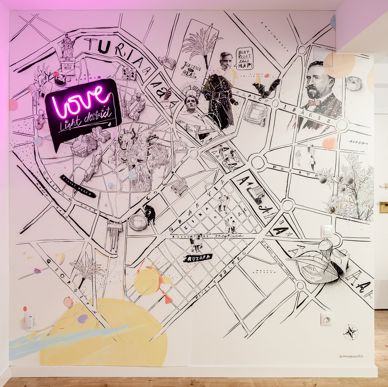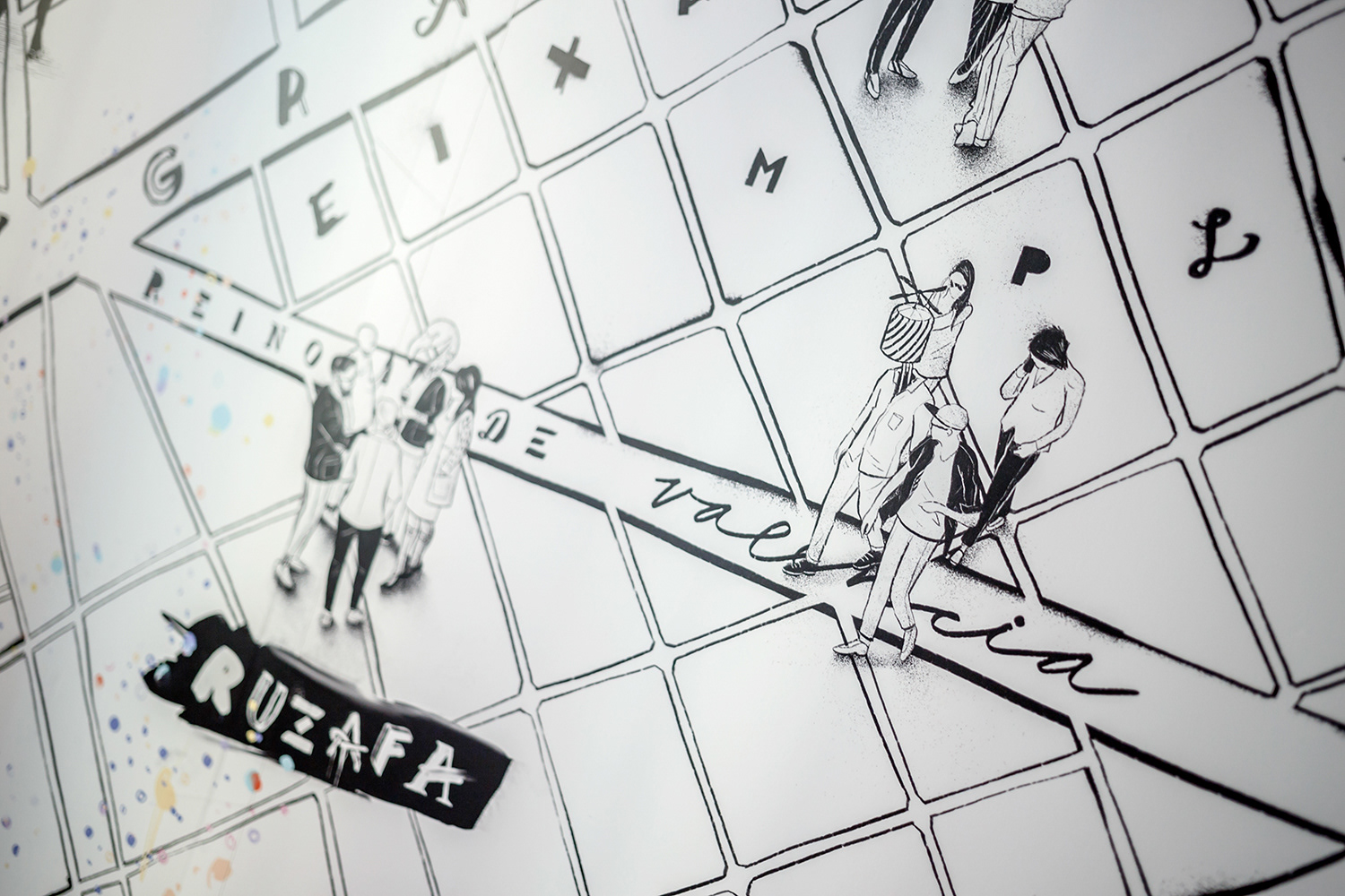 illustrated & interpreted map of Valencia, used as a wallpaper installation.