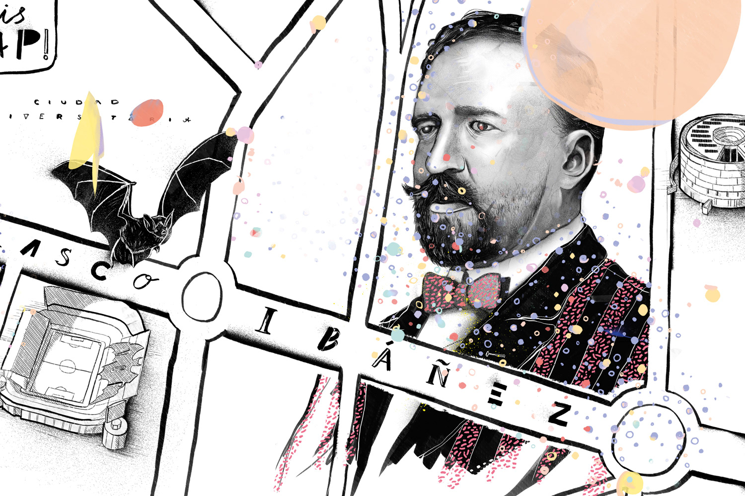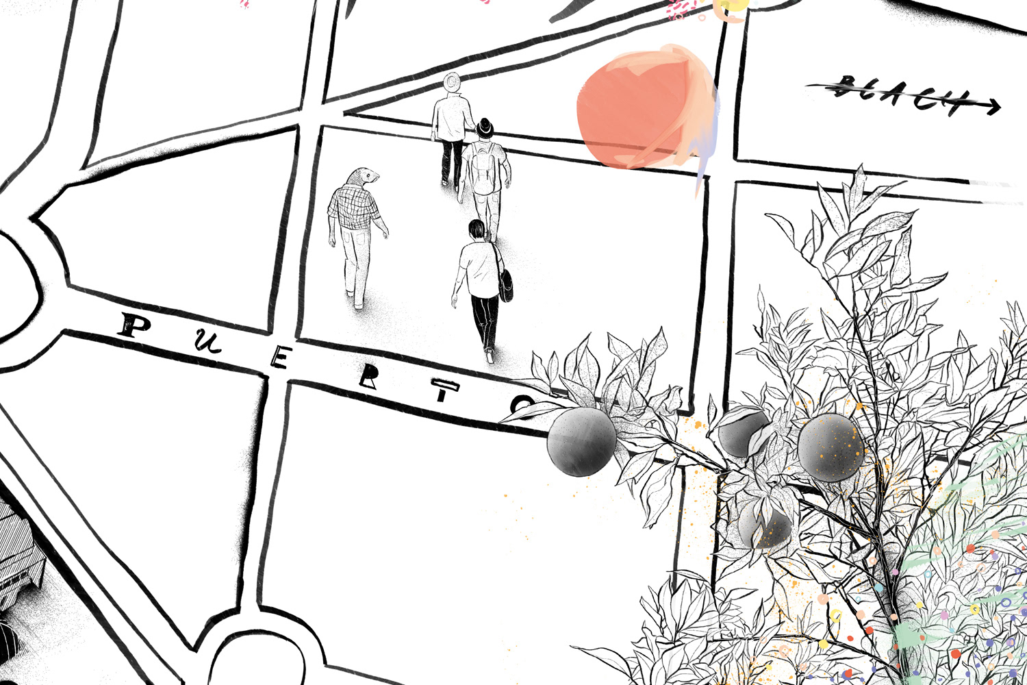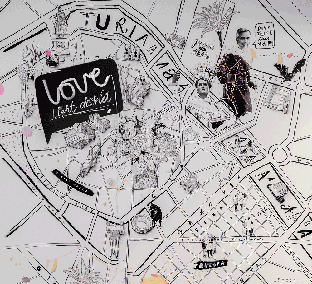illustrated & interpreted map of Valencia, used as a wallpaper installation.