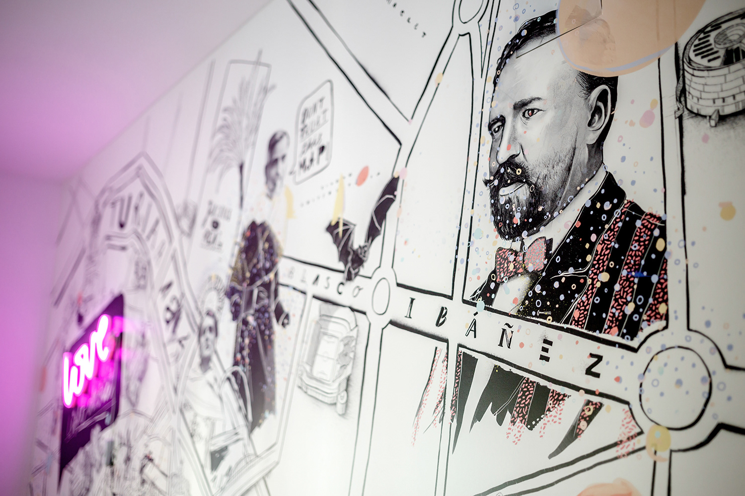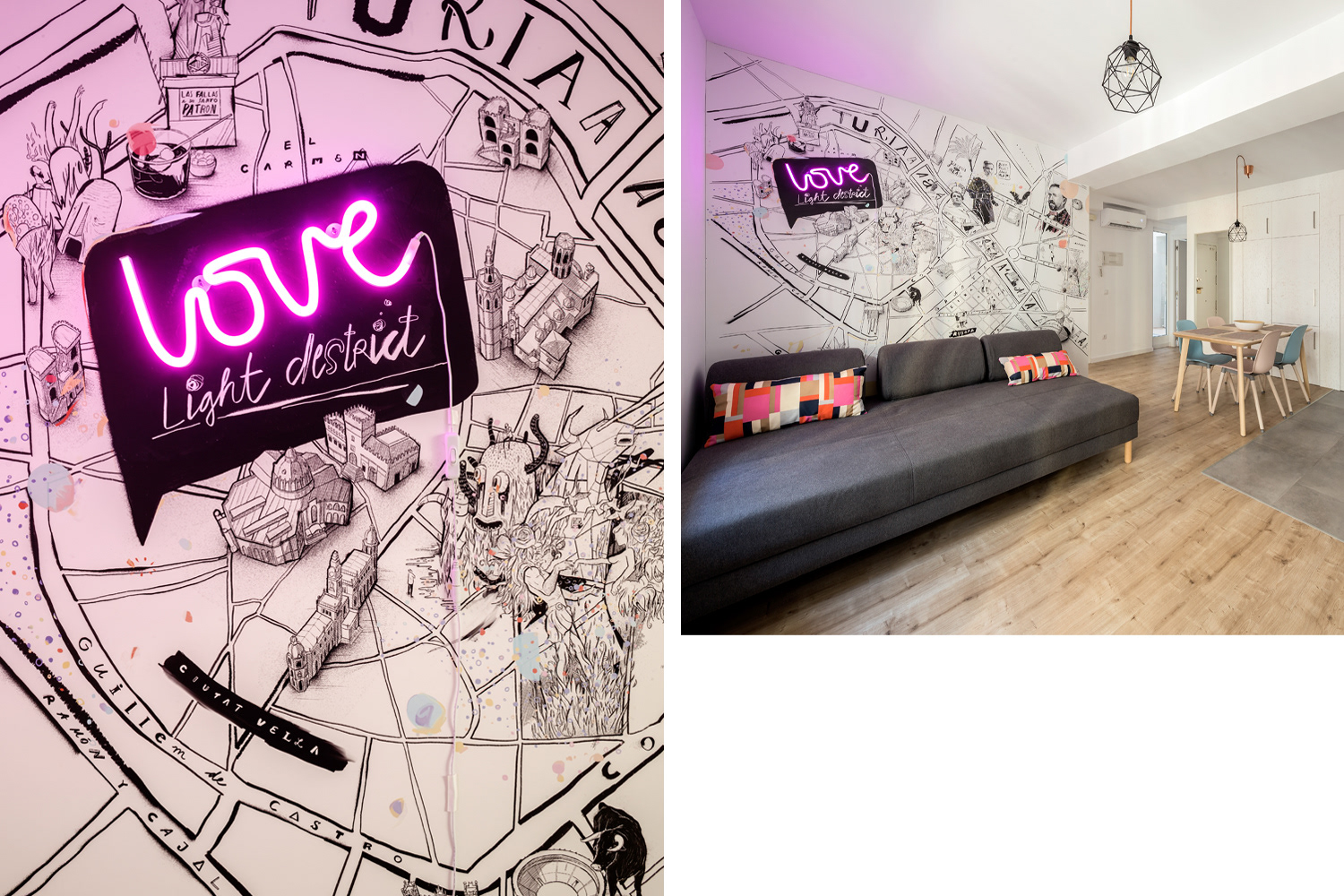 Illustration and installation for apartment wall in Valencia based in the red light district
