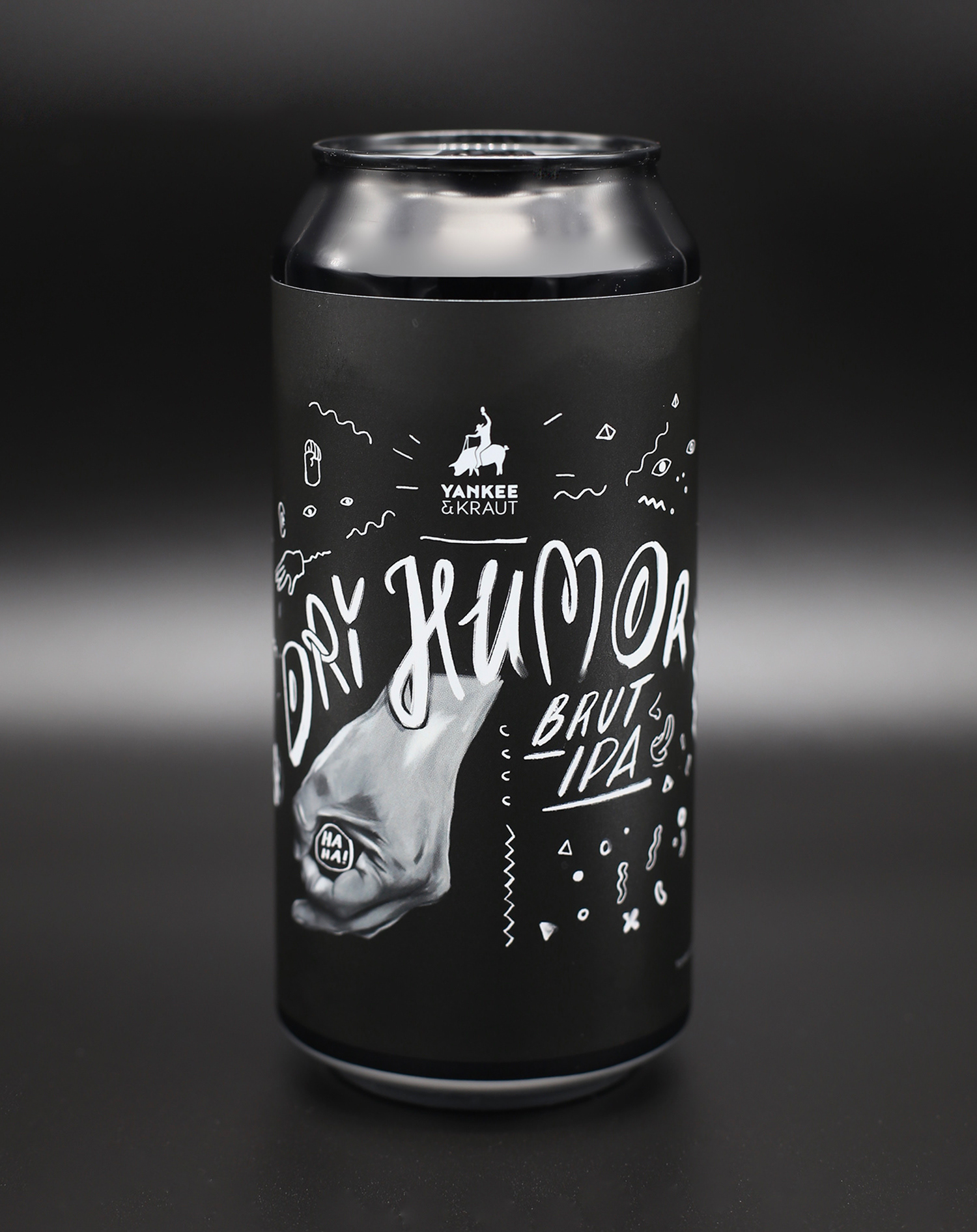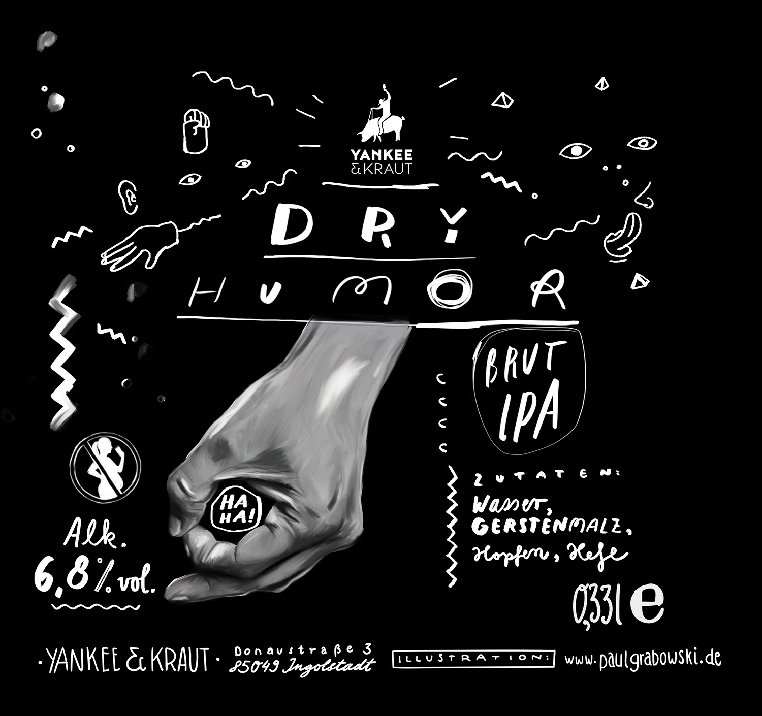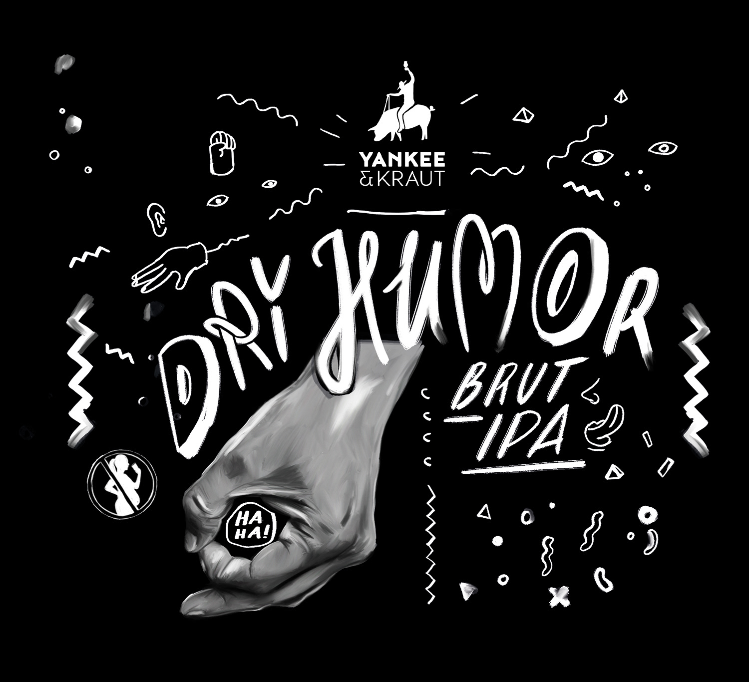 Labeldesign for craft beer called Dry Humor by Yankee & Kraut, Available in bottle and can