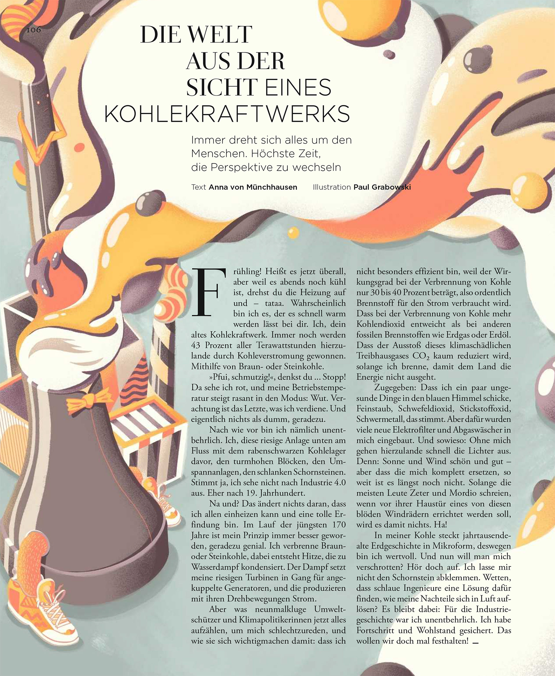 Illustration for Zeit Wissen magazine about being a living coal-fired power station
